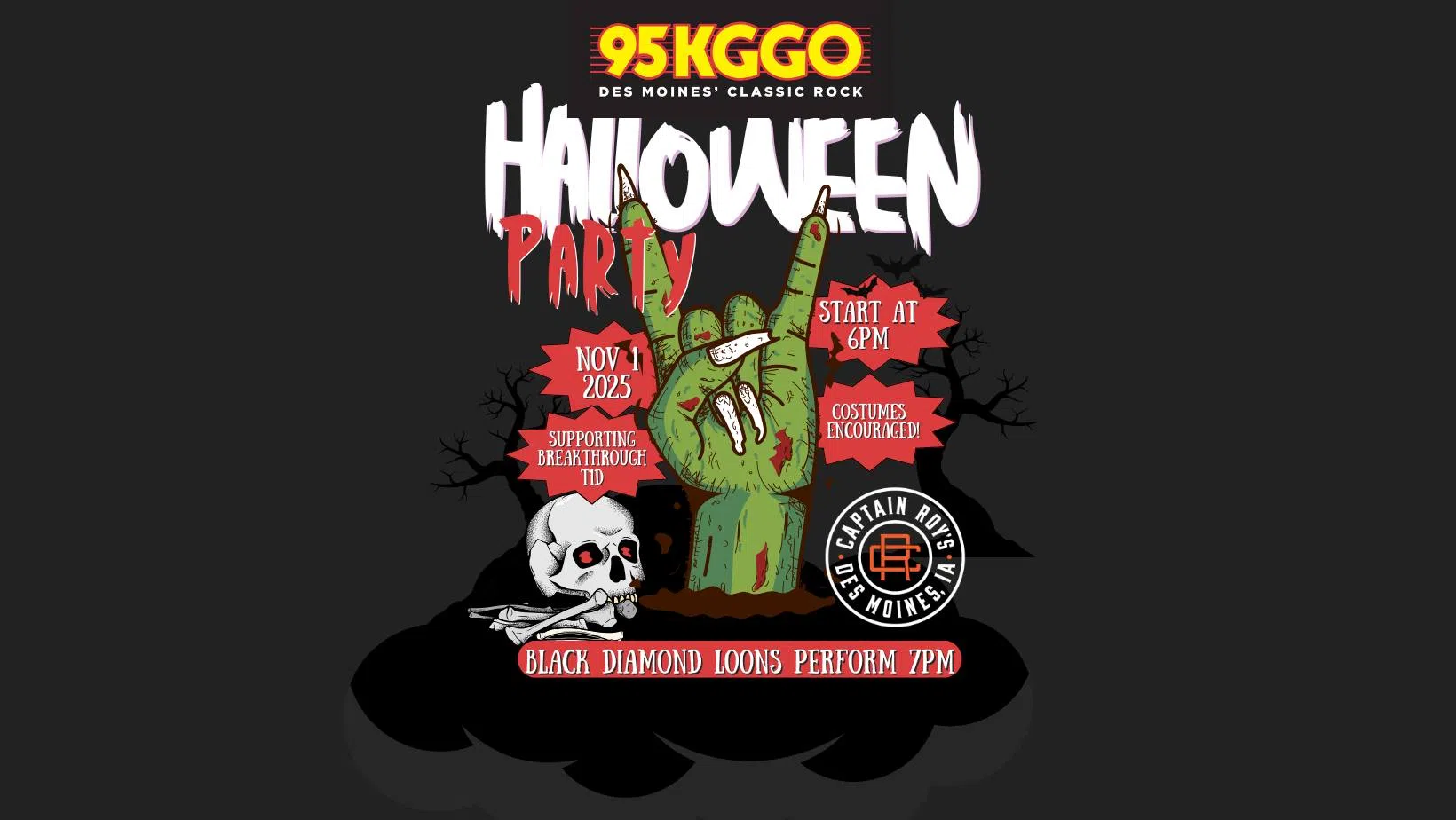 Hey KGGO listeners! Mark your calendars for Saturday, November 1! We're throwing a killer Halloween Party at Captain Roy's starting at 6 PM. Enjoy tricks and treats from Rocky Mountain Chocolate Facto...